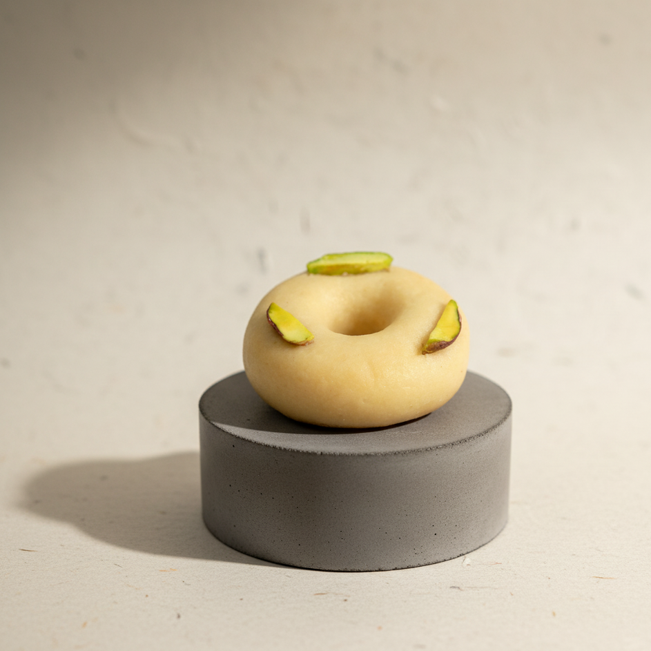 Spécialité de la ville de Sfax. Poudre d'amandes aromatisée à la vanille, mélangée à du blanc d'œuf et soigneusement pétrie, ce qui lui confère une texture unique et un goût délicieux. Recommandée pour les fêtes traditionnelles. À conserver dans un récipient hermétique, à l'abri de la lumière et de la chaleur.