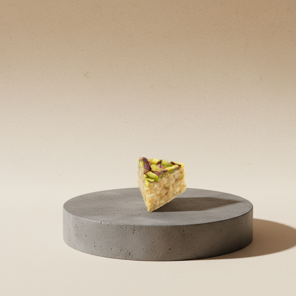 Composée d'amandes grillées et de noisettes concassées, cette préparation est rehaussée d'une couche de pistaches. Idéale pour garnir un assortiment de pâtisseries.
