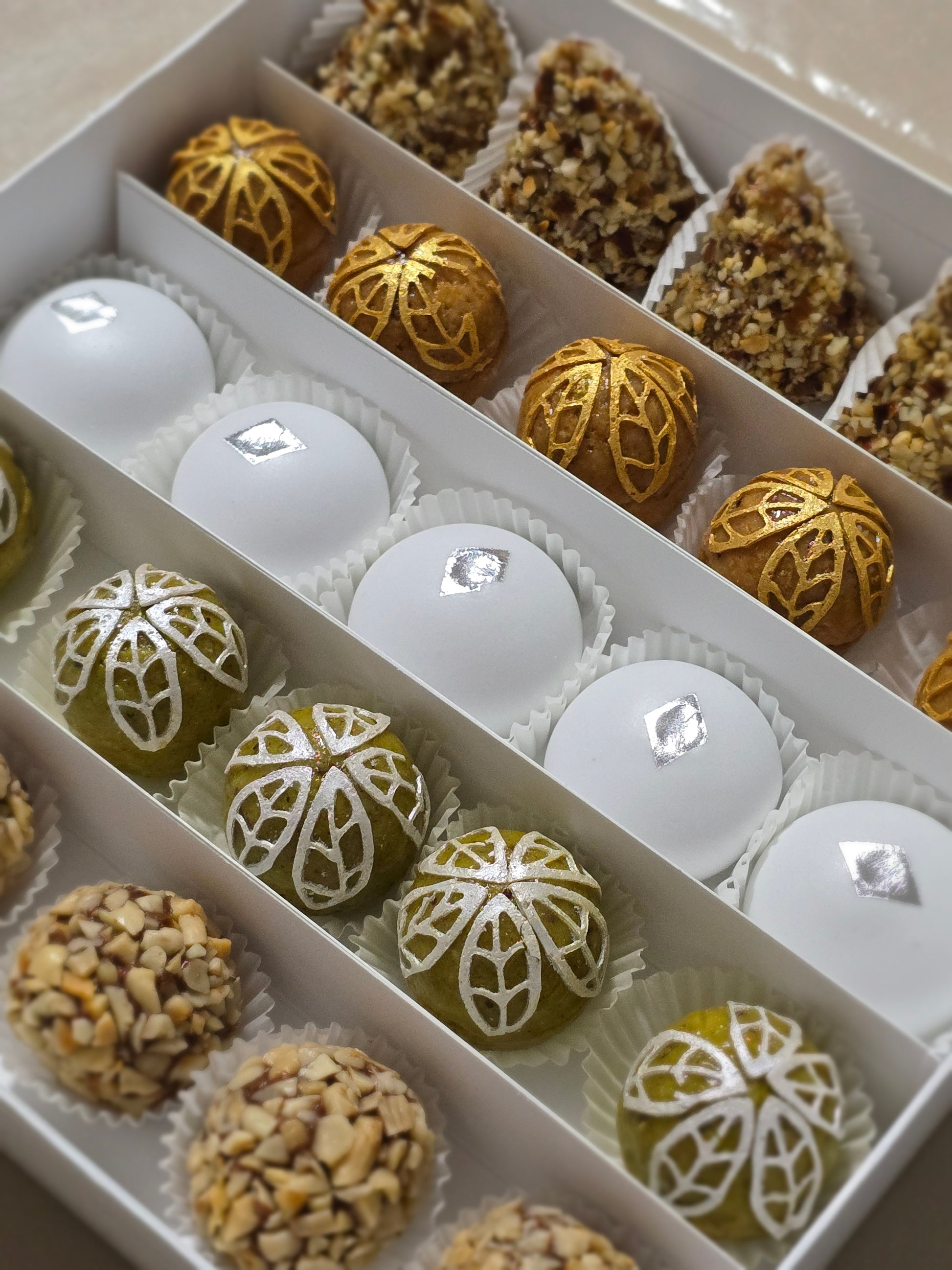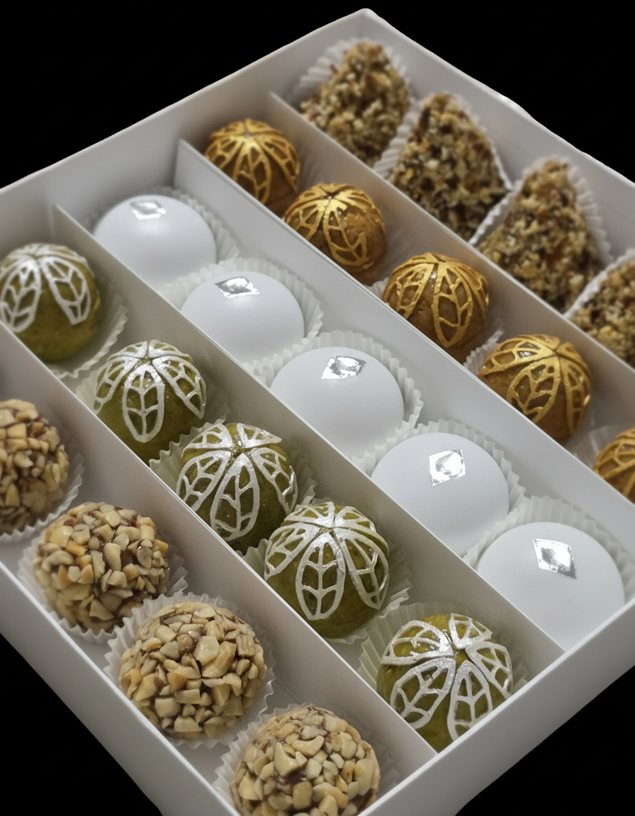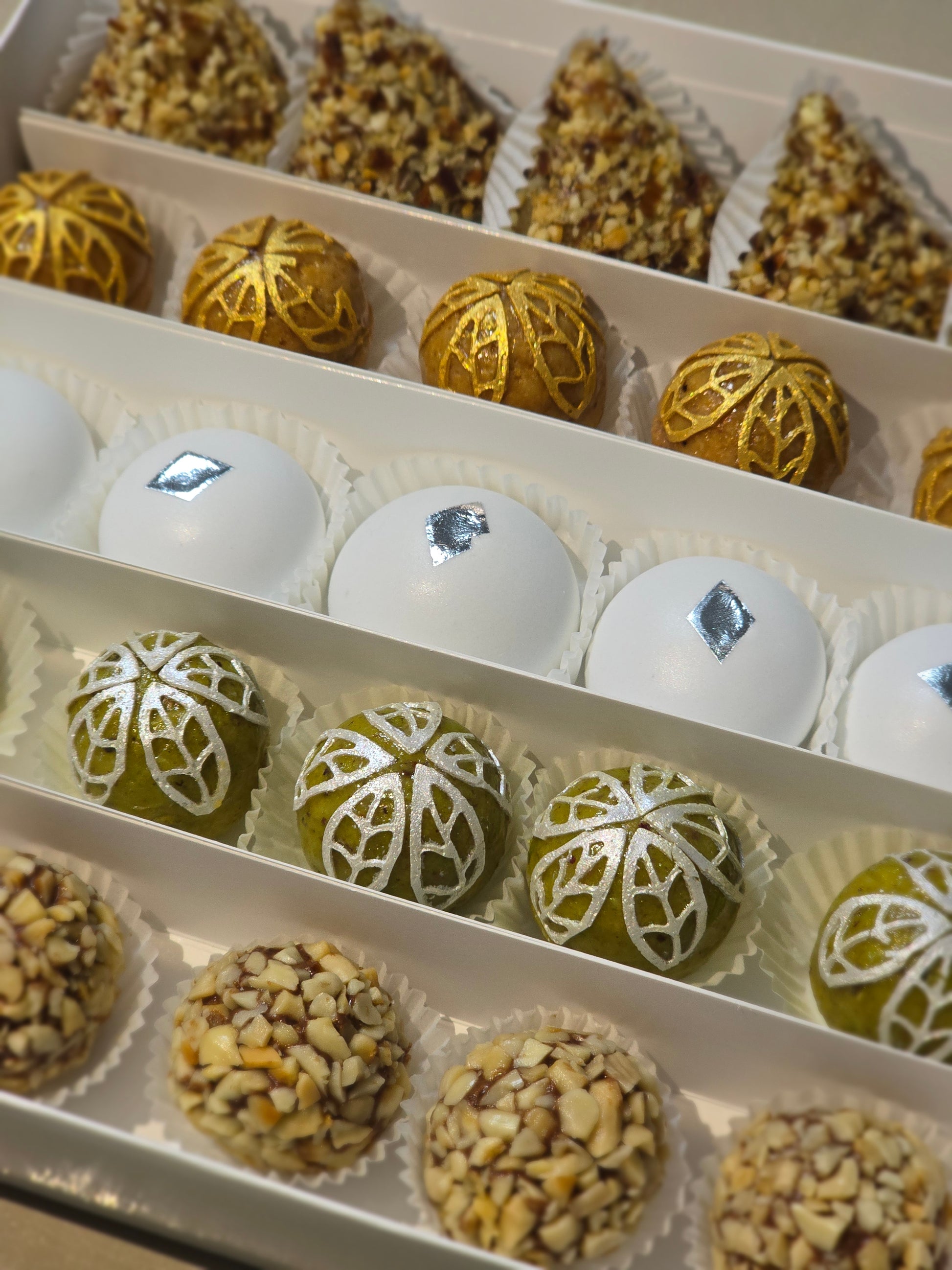 Découvrez notre Assortiment Royal , une collection luxueuse de douceurs tunisiennes artisanales, conçue pour sublimer vos célébrations durant le mois sacré. Ce coffret exquis offre un mélange harmonieux de saveurs et de textures traditionnelles.
