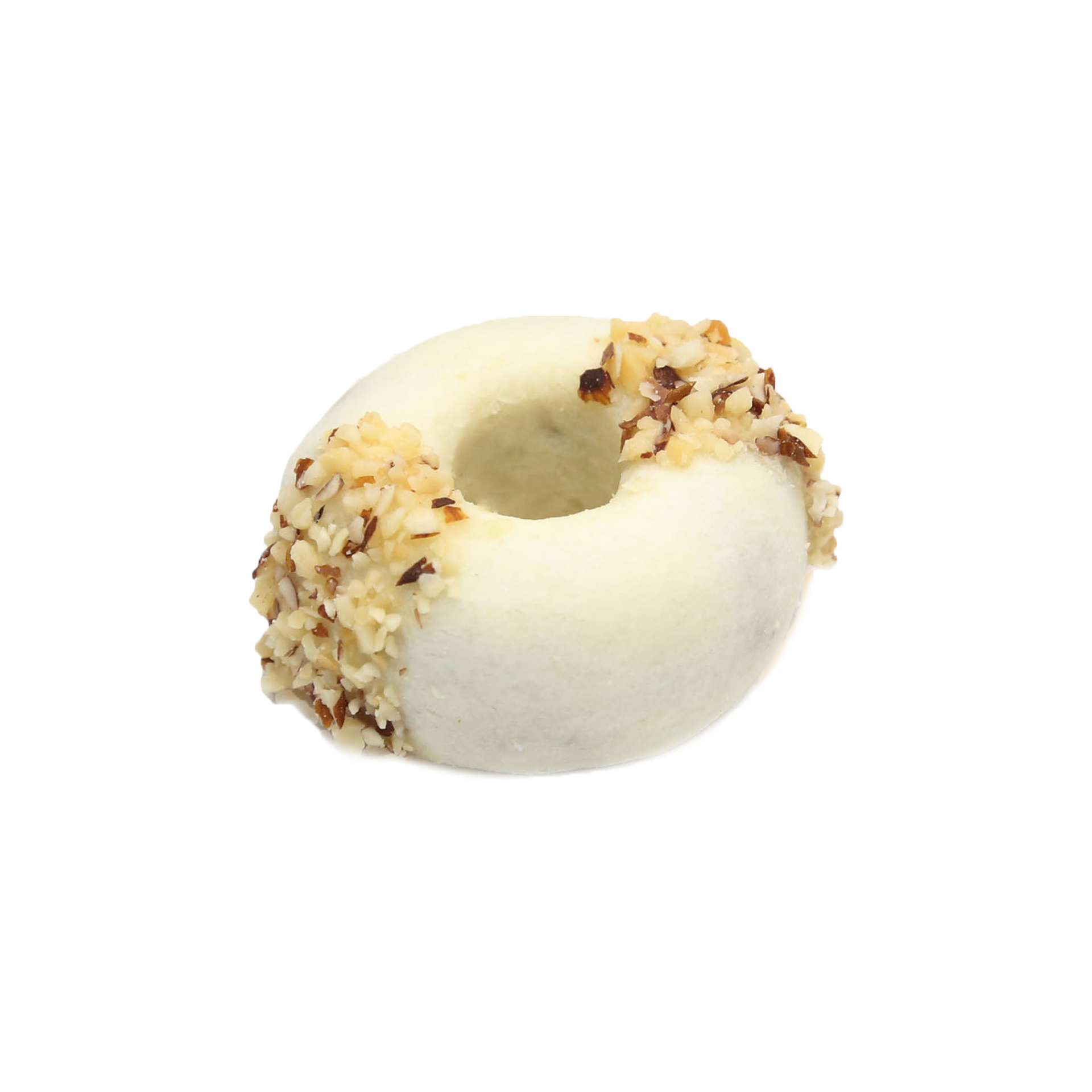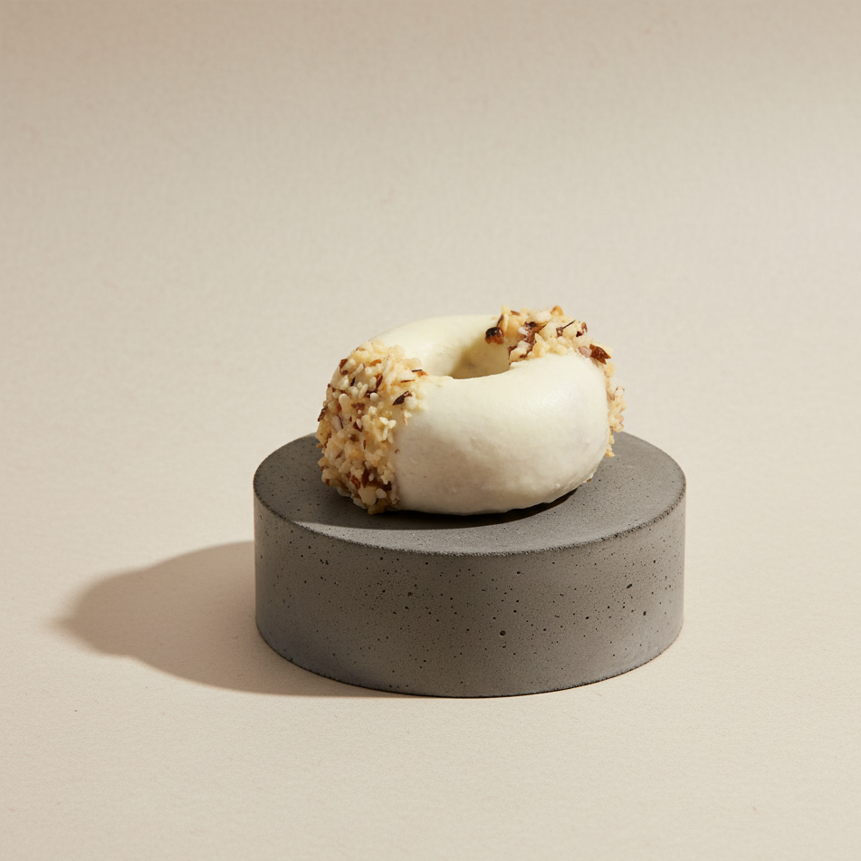 Kaak Warka neu interpretiert, hergestellt aus einer Paste aus Datteln und Nüssen, verziert mit zerstoßenen Mandeln.