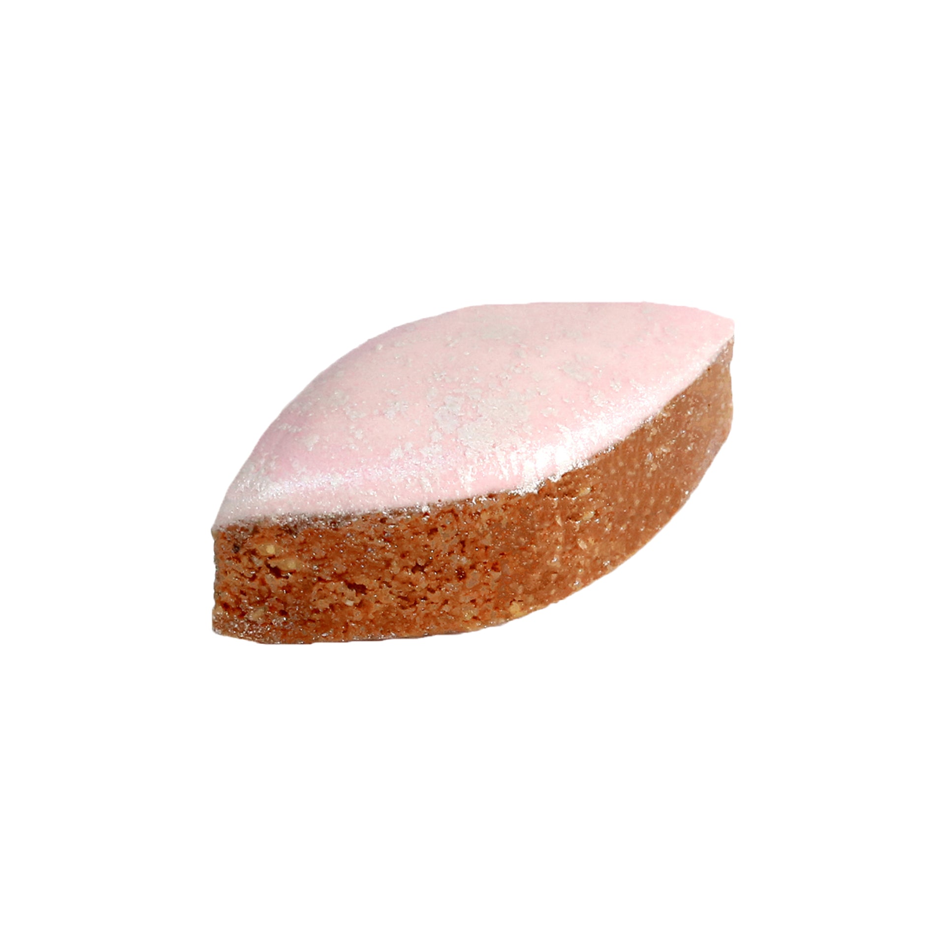 Haselnüsse, Mandeln, Eier, Fondant (Zucker; Glukosesirup), Rosenwasser, Silberperlen, rote Lebensmittelfarbe, E202, E413, E414